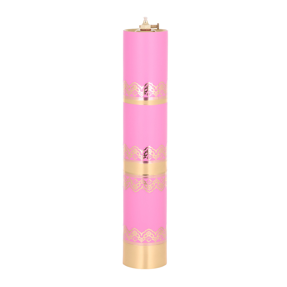 Świeca liturgiczna w kolorze różowym z bardzo trwałego tworzywa z wkładem olejowym o pojemności 180ml.