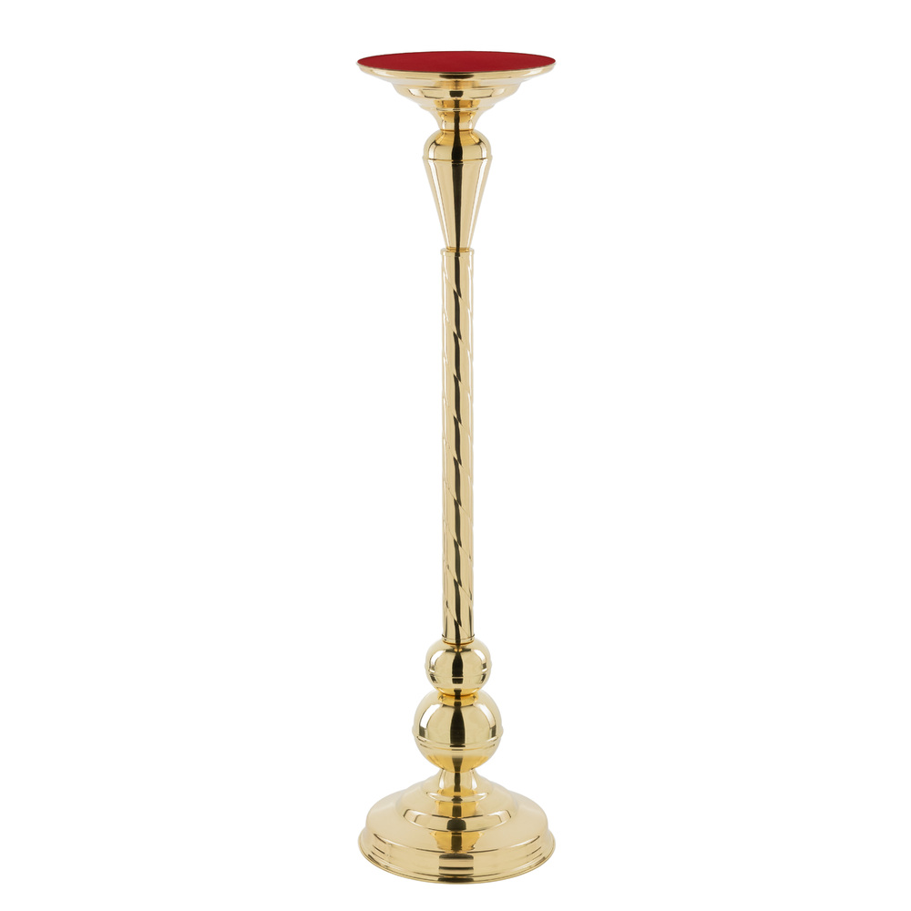 Elegancka podstawa pod urnę wykonana z polerowanego mosiądzu , oklejona czerwonym suknem. Jej klasyczna forma i solidna konstrukcja stanowią godne i estetyczne uzupełnienie ceremonii pożegnalnej.