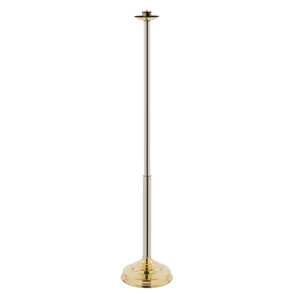 Lichtarz procesyjny na świecę wykonany z polerowanego mosiądzu połączonego ze stalą nierdzewną.